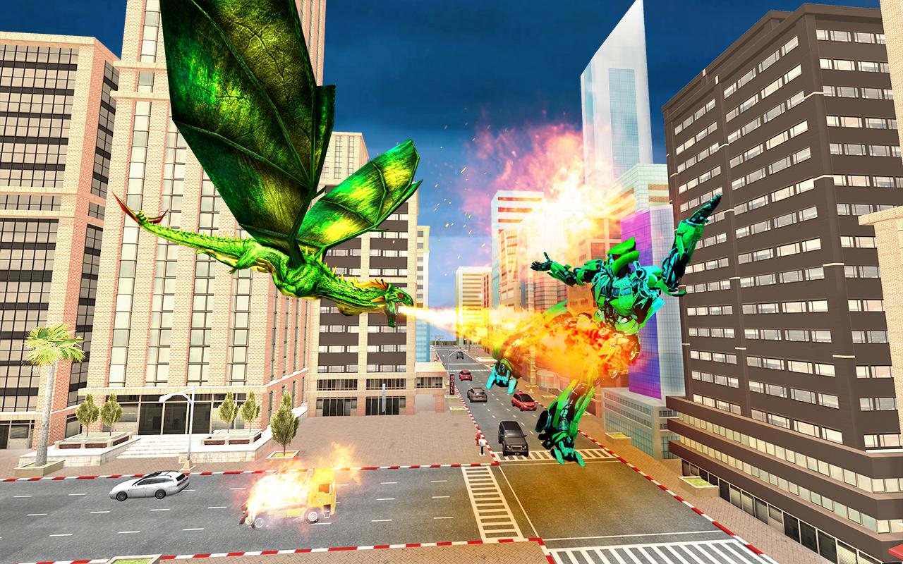 So, have you finally become a fan of Dragon & robot fighting games? Transform your monster dragon and flash your extreme demolition features. Dig into an incredible composite of monster robot games like never before. Aim and bombard! Get ready for biggest war action to destroy your evil robot enemies by making the best ever fighting strategy in the most addictive robot transforming games of the era. The real monsters are on the streets go and kill them.