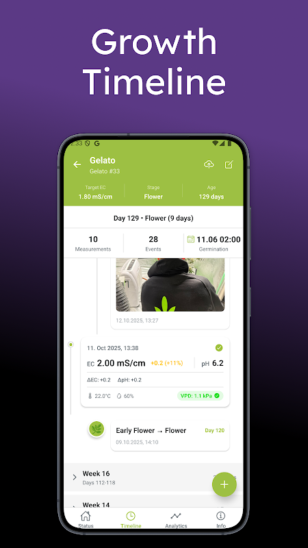 • Timeline and milestones: Germination date, growth phase logs, and plant-related events