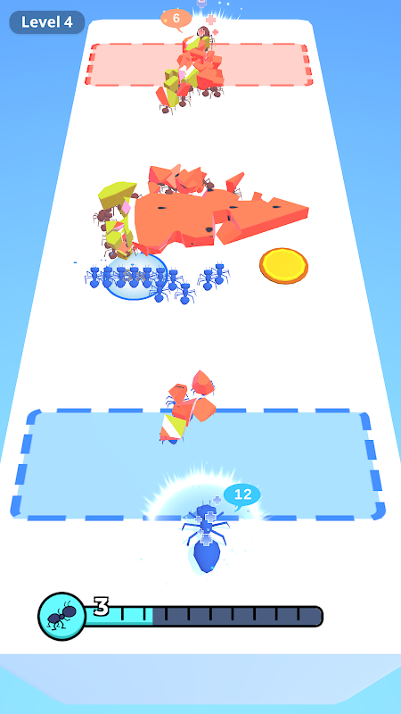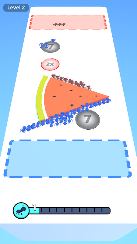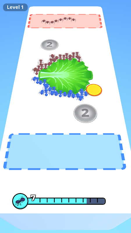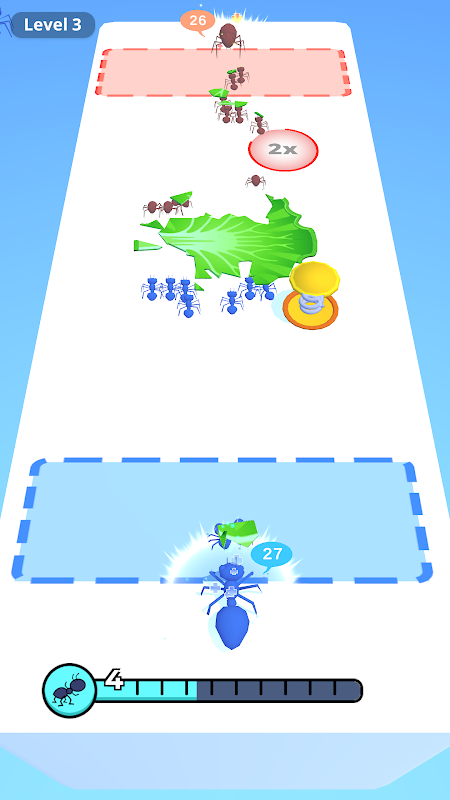 Aim for the multipliers to grow the biggest crowd of ants possible,pulling food back or defeat an enemy queen ant to win the game.