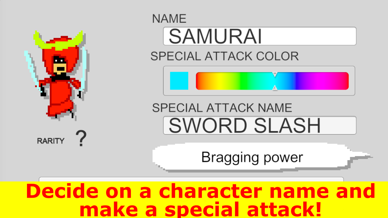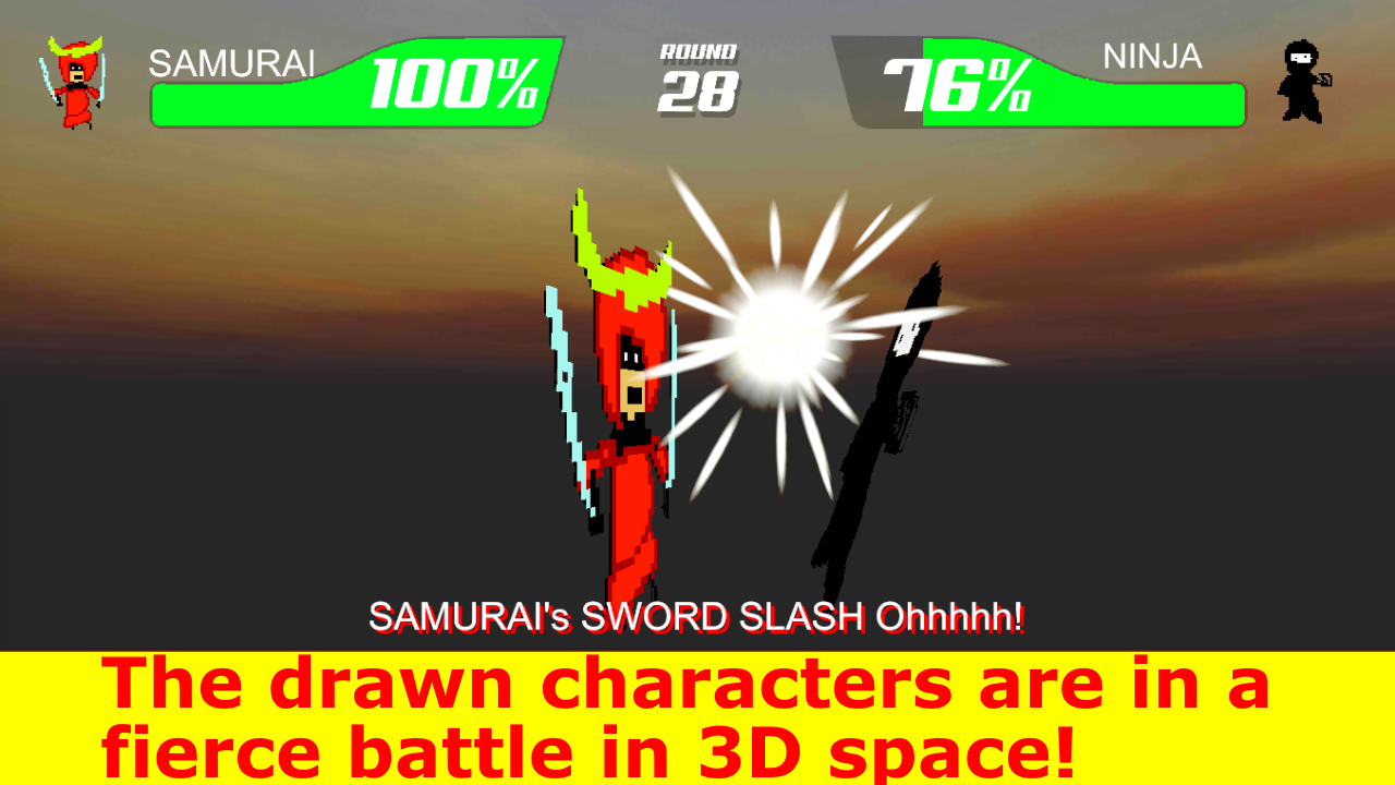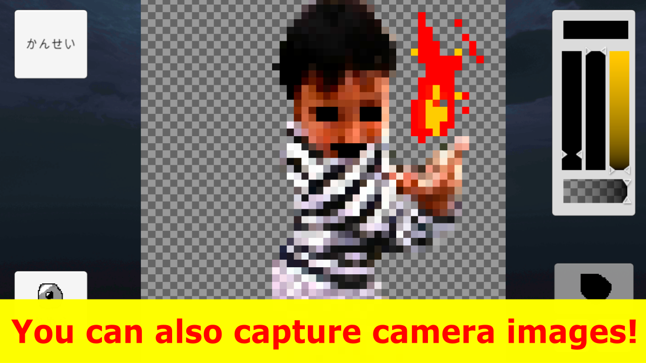 The characters you drew will fight. You can also capture camera images. Once you have a strong character, aim for the top ranking in the world in online battles! The strength is decided according to the character you drew! You can draw a hero with dots, or you can scan a scribble. Music: Maoudamashii (https://maoudamashii.jokersounds.com)