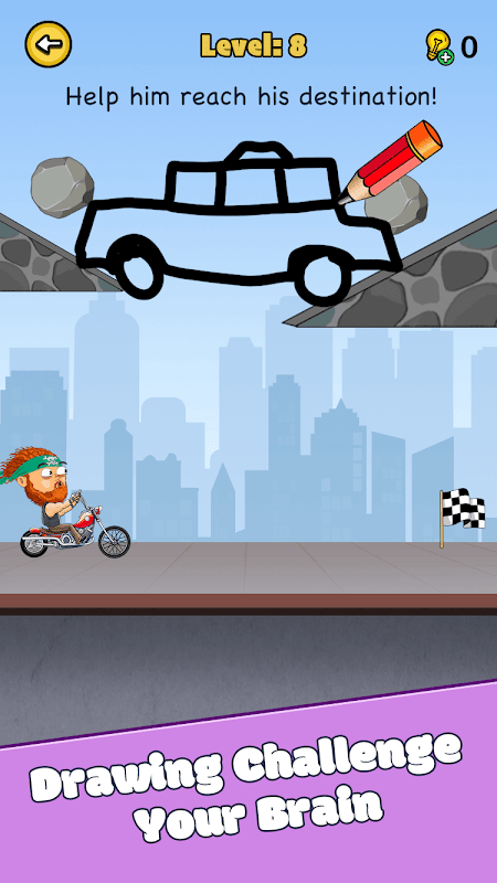 This is a relaxed and happy drawing line puzzle game! Forget your worries, just press your finger and Draw a bridge to save the rider