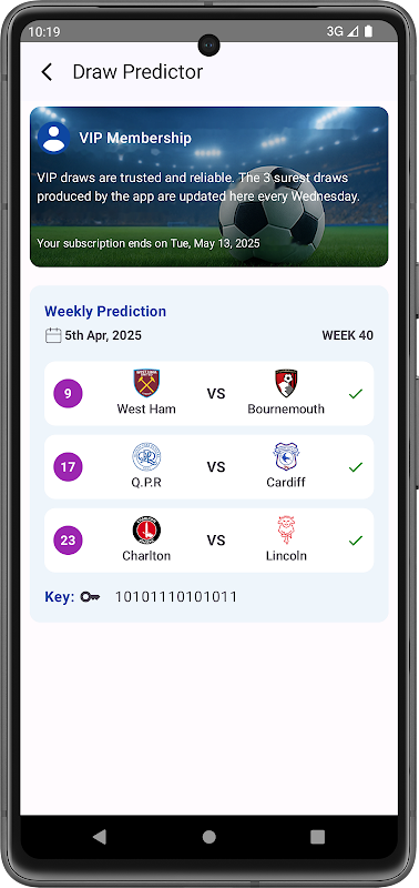 The app analyses over 520 results from previous weeks to generate sure draws. Each weekend, there will be about 7 free draws and 3 sure draws for VIPs.