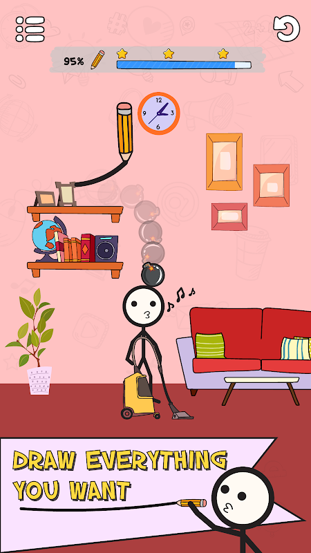 ✎ Hit Bad Man: this is where you become a hero with your fingertips and logical thinking! It’s all about physics puzzles, so think harder, draw wiselier to kill the bad guy.
