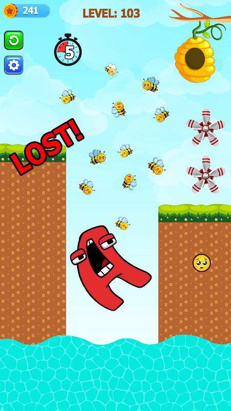 In this captivating rescue alphabet game, the core objective is to draw lines and draw shapes strategically to save the letters from the bees in puzzle games 2023. As the bees buzz towards the vulnerable alphabet, it's up to you to quickly analyze the situation and draw obstacles to block their path in alphabet lore game with the blend of draw to save and alphabet puzzle game. Showcasing your ability to think on your feet, you'll utilize your drawing skills to create barriers that save the letters from bees, preserving the integrity of the new alphabet game.