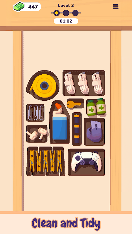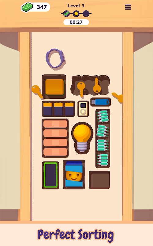 Each brain training task will challenge you with various objects to position into the correct sections. You’ll be aiming for perfect precision if you want to ensure a snug fit for the ultimate tidy triumph.