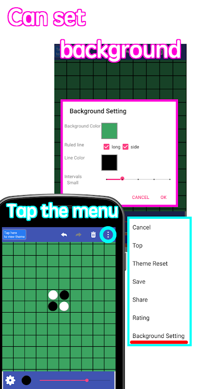 You can [display / non-display] the theme by your tap.