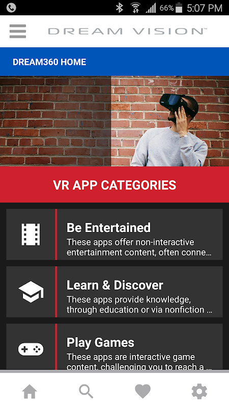 Use Dream360 to filter and preview available content: is the goal to be entertained? Educated? Whether aiming to explore and discover new worlds, or to be fully immersed in a game, this app helps VR fans create their own personally curated experiences.