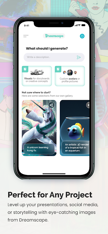 Get ready to embark on an unforgettable adventure into the world of AI-generated art with Dreamscape, your ultimate AI Photo Generator, and AI Art generator free. Download Dreamscape today and unleash the creative power of your mind!