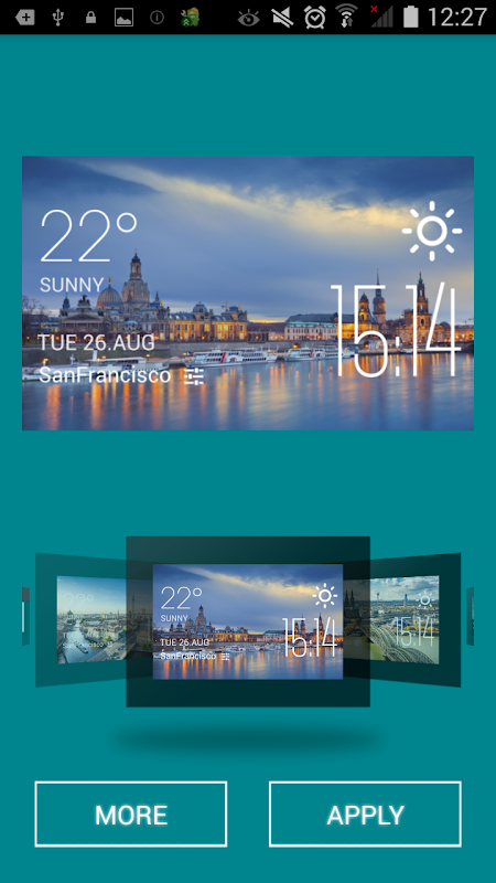 After installing Amber Weather and placing a widget on your home screen, you can choose to apply different widget skins.