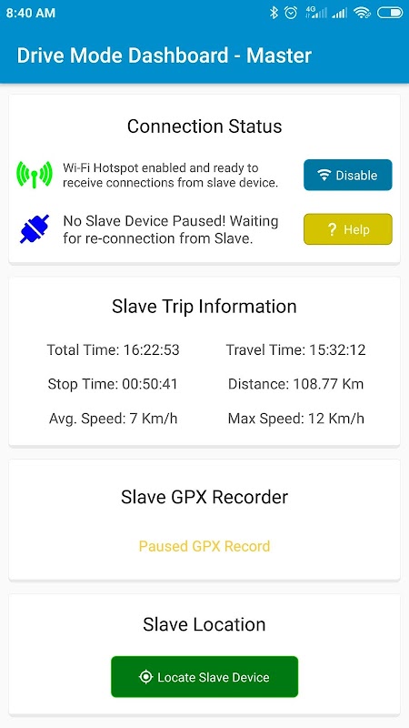 View Slave device trip stats