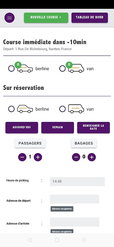 Vous avez la possibilité de réserver une course en immédiat (-10 min) ou bien à l’avance.