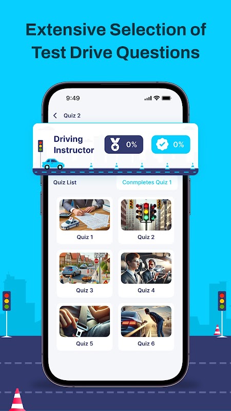 Master your vehicle knowledge with a comprehensive bank of test questions. Covering all essential driving concepts, this feature helps you excel in driving exams and tackle real-world scenarios with confidence.