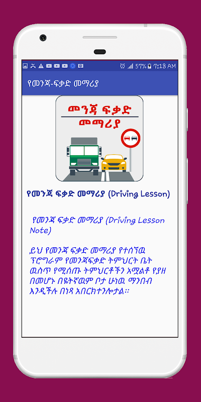 This Mobile Application that contains full Information about Ethiopian Driving Lesson .