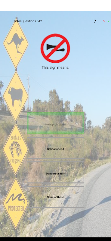 Before applying for your new license you must have to learn road signs, in this application we have introduce a simple traffic sign test, through which you can test your traffic sign knowledge.