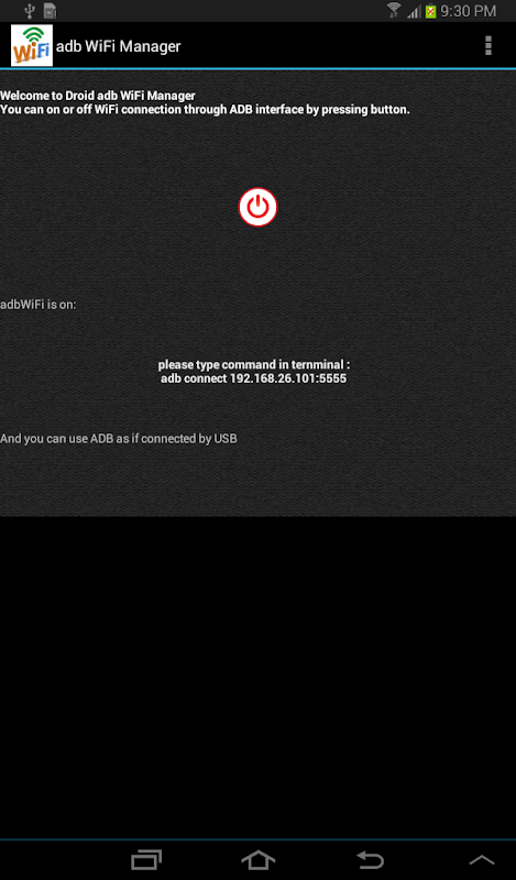 - Execute this application(Droid ADB Wifi manager) in your android device.