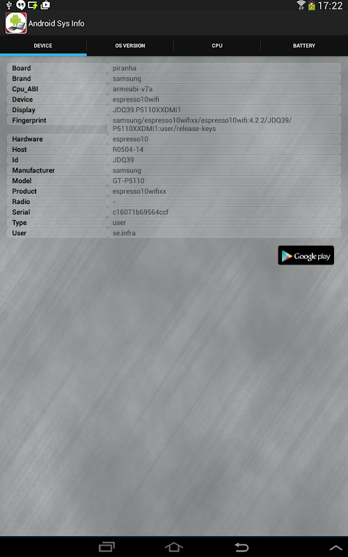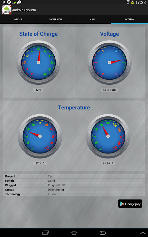Check CPU, Battery, OS Version and Generic device Informations