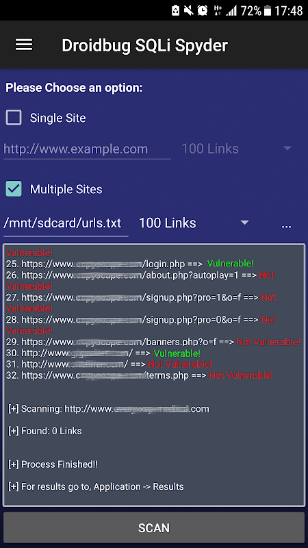 Droidbug SQLi Spyder is a powerful SQL scanner engine that can find :