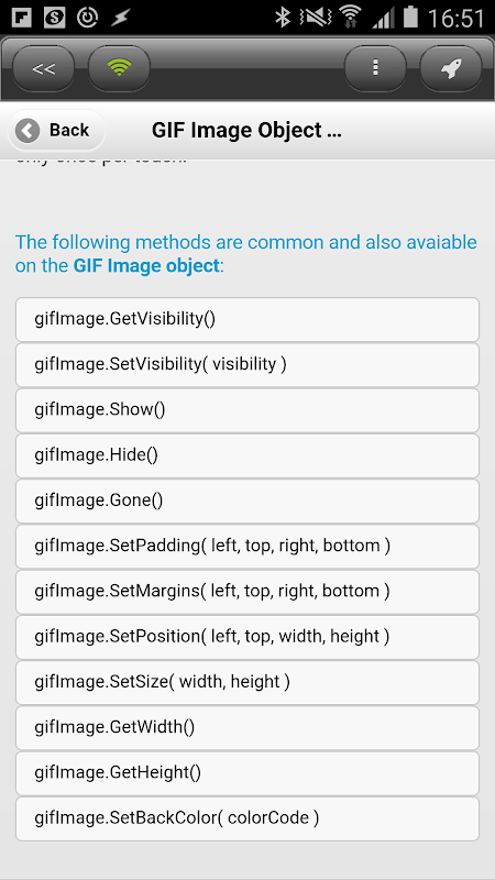 Android does not natively support the animated GIF format in Image Views. This plugin allows DroidScript to display the animated format, as well as control them in a similar way to how you would control a video file.
