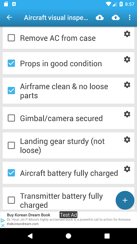 The app contains all the items you will need to check or prepare before any drone flight. You can also add you own items, or edit the existing ones.