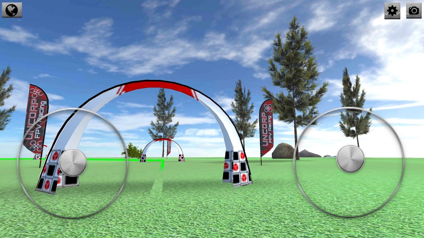 If you are a beginner, you can fly with throttle stabilizer and throttle mapping (keeps the height and centers the throttle stick), it makes flying much easier in this FPV drone racing quadcopter league simulator offline game.