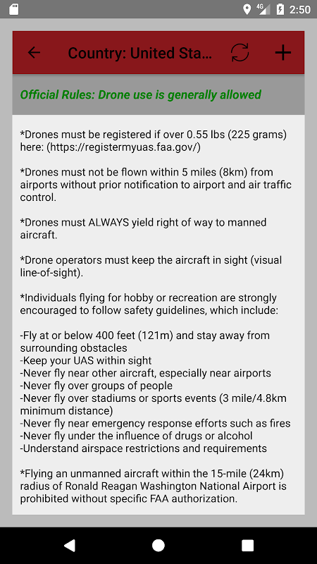 ** Get automatic notifications when you arrive in a new country, state, or other area where specific drone rules apply so you're never in the dark about what the regulations are where you want to fly!