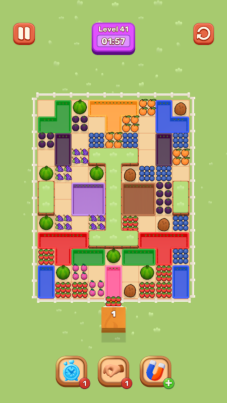 In this colorful game, your goal is to collect all the fruits on the board by moving the carts around — but there’s a twist! Each cart can only collect fruits that match its color.