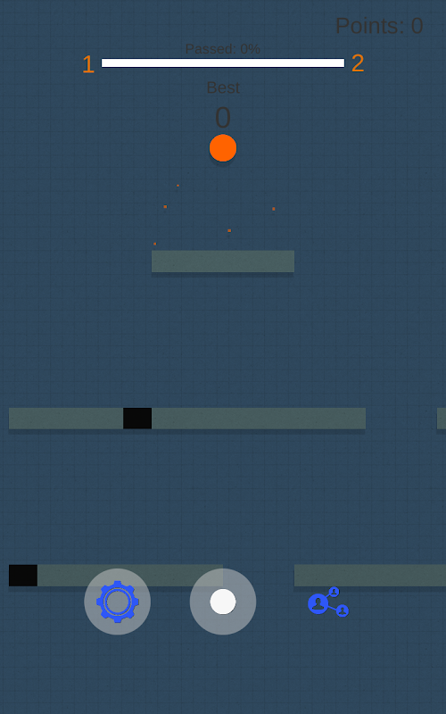 Your ball smashes like a brick through colorful platforms that block its descent, but if you hit a black one, it's all over! Your ball shatters to pieces and you have to start your fall all over again.