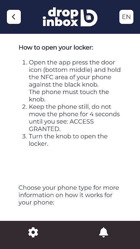 No power is needed and you can easily open our locker locks with your own phone by using this app.