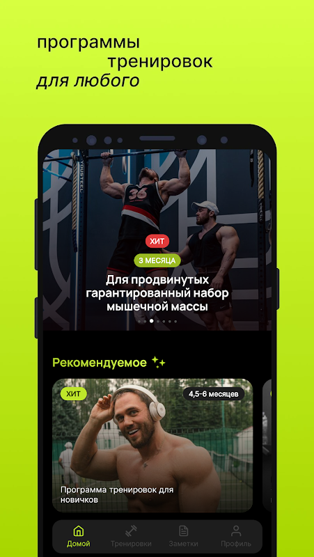 Each workout was developed by Andrey Skoromny and is designed for a certain period (from two to six months). The training program in the gym is divided into cycles that combine high-volume and strength exercises. Pumped abs, strong arms, a healthy back and a straight posture - everything is possible with Drop It.