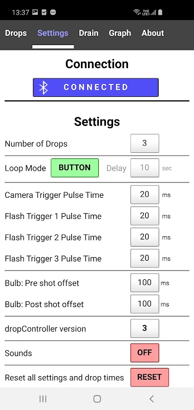 The dropController app is extremely easy to use and to get started with. The advanced loop mode (using delta values) makes it just as easy to capture water drops collisions.