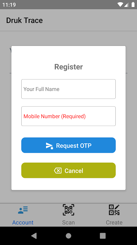 1. Verification of mobile number: Mobile number will be used to inform individuals in case of positive contact scenario. Only valid Bhutan phone number will be accepted for registration.