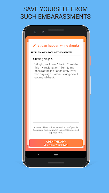❎ You had saved your private photos in photo vaults. However, once you were drunk, you did not think twice in opening the photo vault in front of your friends and show them all the private photos and videos. In case you had drunk app locker, you would be asked a question to open the photo vault and would have been saved.