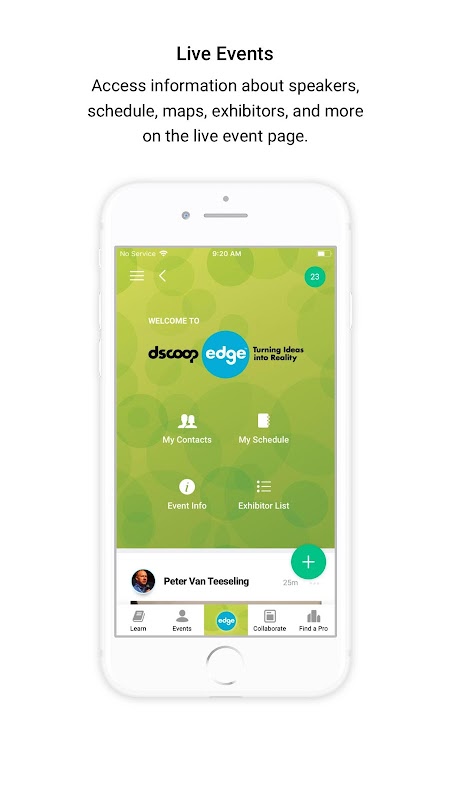 Live Event: Access live information for Dscoop Events like: speaker bios, schedule of events, network with other users and even add sessions you want to attend to your schedule.