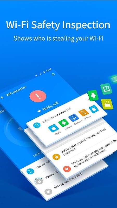 ✔ Scan WiFi networks for encryption issues, weak passwords and other threats