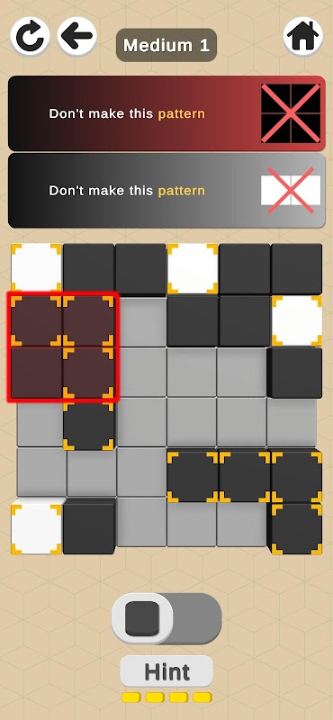 Dual Logic is a grid based puzzle game where you have to fill a grid with 2 colors by respecting the rules.