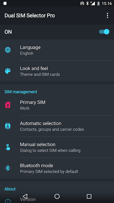 Dual SIM Selector allows selection of SIM-card when making a call from a third-party dialers