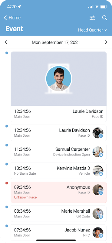 - View access log of the users in the door gate every time, from anywhere