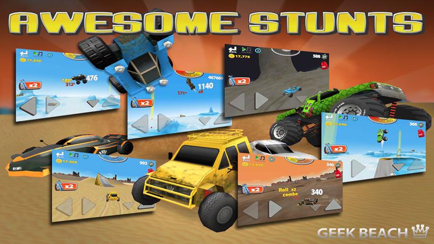 Tear around the desert in your nitro-fuelled Dune Rider. Jump off sand dunes, ramps, cliffs or whatever you can find and pull awesome mid-air stunts. Perform spectacular tricks, earn cash, unlock better cars and discover new worlds for the ultimate ride.
