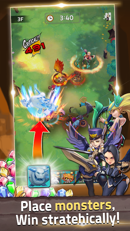 Achieve victory by enhancing your monster troops and placing them strategically.