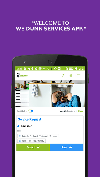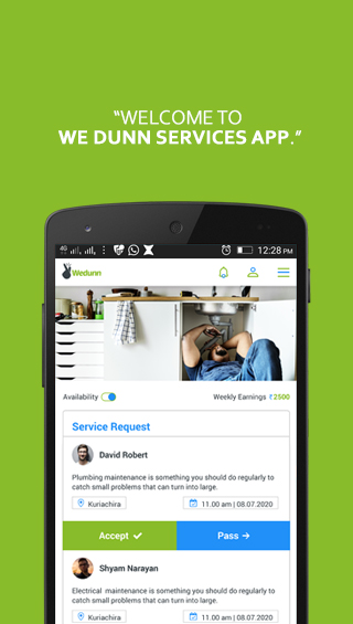 This app is for the service professional registered in the Wedunn and got certified by Wedunn authorities. Here you can get work from your nearby localities and get paid by Wedunn. Only you have to do here is to download the app and register in it. Our authorities will contact you and after verification you can get service request from the your location.