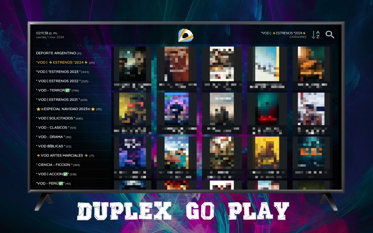 Duplex GO PLAY was developed so that each user can load the content provided by their service provider, the application is empty, you must load your own m3u list for it to work, the application does NOT have content such as movies or series, to access any content you must bring your own content with permission of the owner
