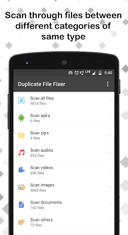 Duplicate Files Fixer app that scans and deletes all types of duplicate files on your device. This duplicate media remover app will help you recover loads of storage space on your device so that you can save additional data or install other apps from the Play Store without having to face low storage warnings.