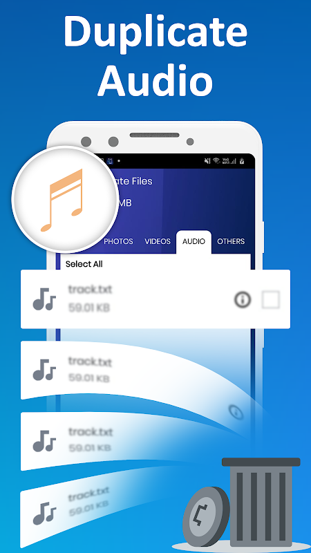 So now it's easy to Recover Additional Storage by removing Exact Duplicate Files (multiple files have the same content) from your Android device including internal storage, external storage and hidden files. This app will scan for all files available on device to find Duplicate Photos, Duplicate Videos, Duplicate Audio, Duplicate Documents(, and Other Duplicate Files.