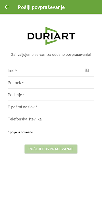 Mobilna aplikacija je namenjena fizičnim osebam, ki so v postopku gradnje ali prenove doma. In potrebujejo novo leseno stavbno pohištvo. Uporabniki si lahko sami izdelajo informativni izračun za nova lesena okna. Izračun se izdela glede na izbiro dimenzij, profila, izbiro lesa in tipa oken. Uporabnik lahko izdelan informativni izračun pošlje direktno na podjetje in tako pridobi tudi ponudbo podjetje DURIART d.o.o.