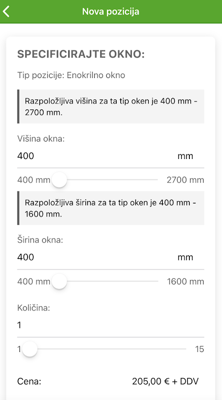 Enostavni informativni izračun za stavbno pohištvo podjetja DURIART d.o.o.