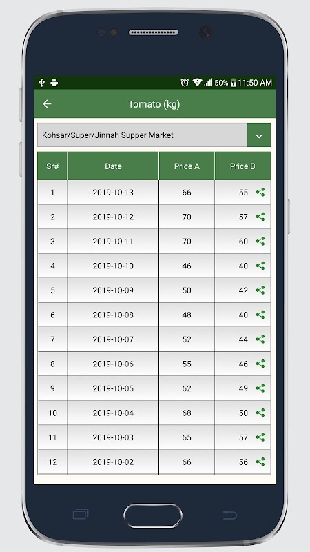 • Share option is there to share the price of a single commodity through various apps.