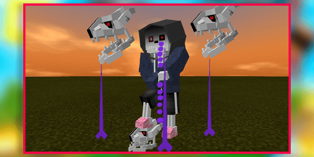 install DustSans Addon to your Minecraft PE game with Dust Sans Mod for MCPE in 1 tap! With this DustSans mod for Minecraft Pocket Edition, you'll get a characters from Dusttale such as Dustsans, Gaster Blaster, Bone Throws, and Bone Luker added to your Minecraft world! Download now and enjoy the new DustSans Mod!
