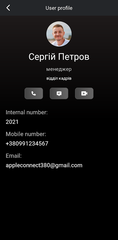 • Contacts list cleanly handles long job titles and surnames—no truncation or overlaps.