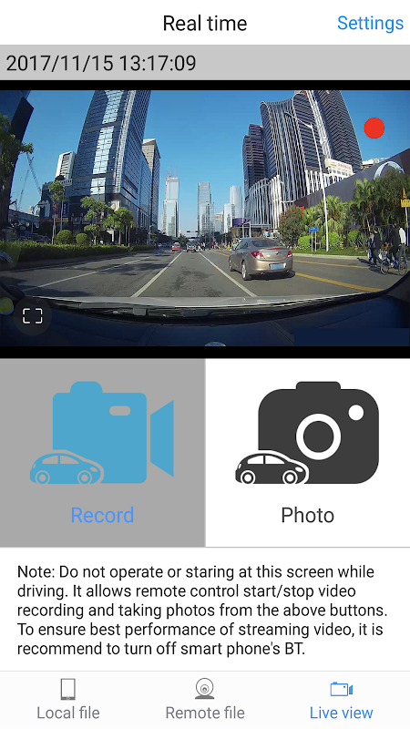 1. Real-time monitoring: the image of the current vehicle recorder can be viewed in real time to control its video and take photos;