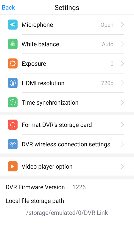 4, setup: adjustable of vehicle traveling data recorder parameters such as the white balance, exposure, HDMI output resolution, showing the current hardware and app version number, still can adjust the vehicle traveling data recorder hot associated Settings.